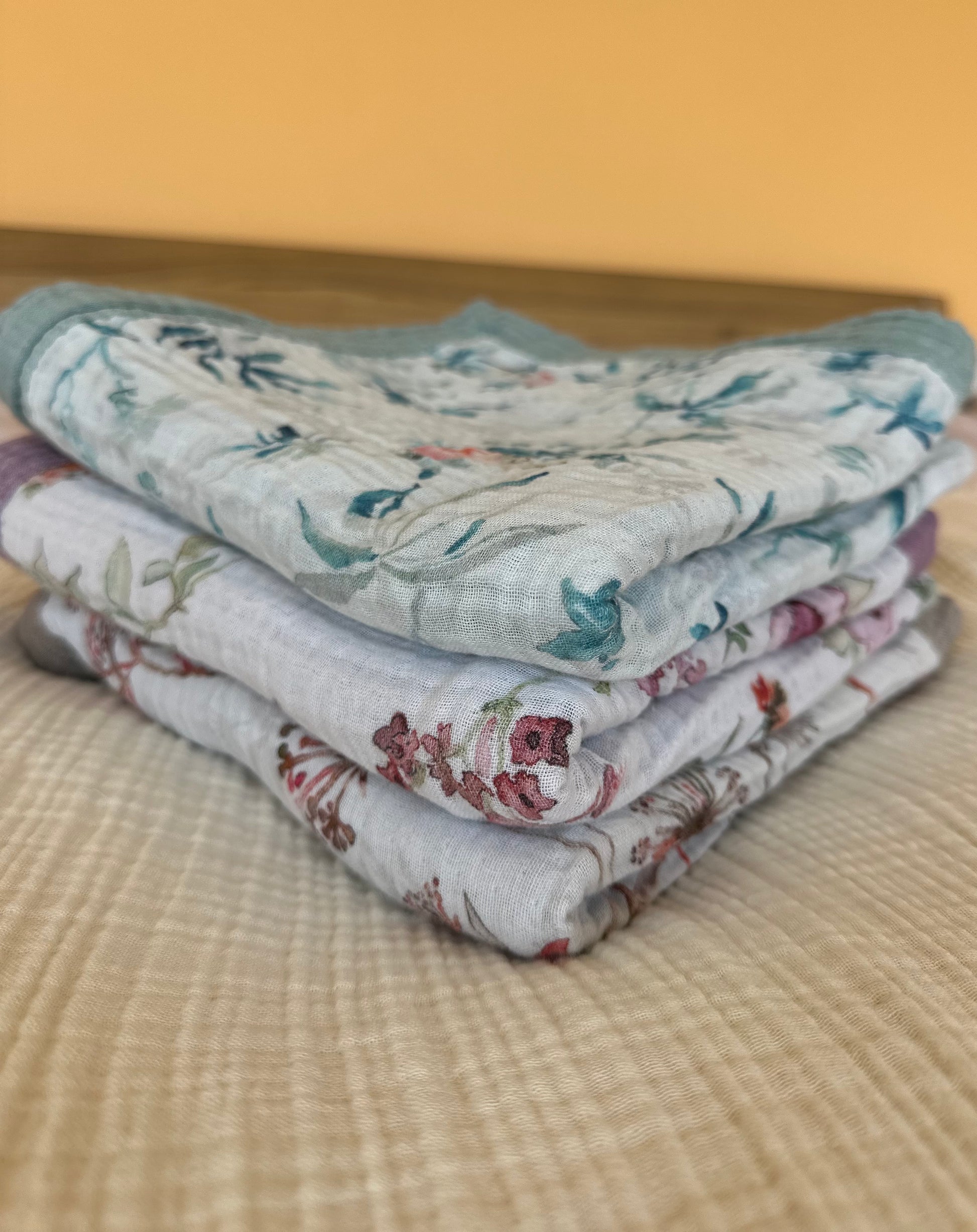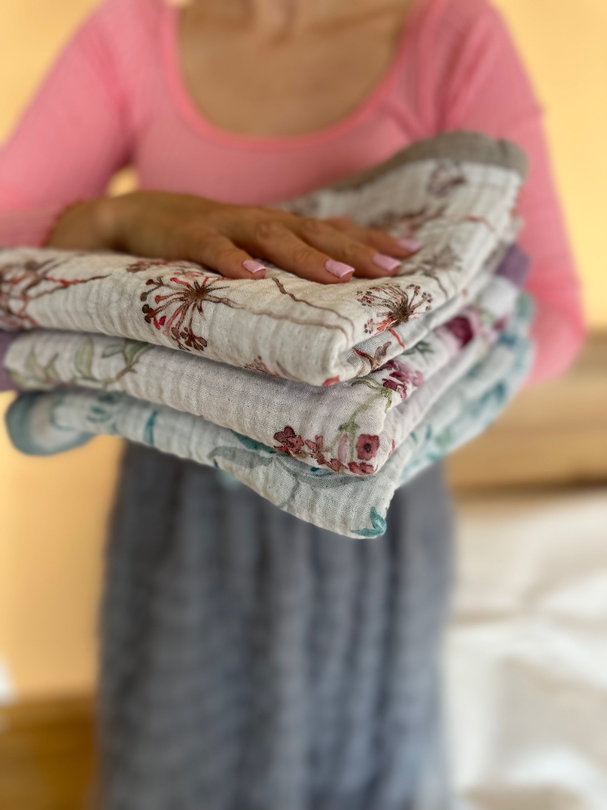 Unsere Produkte bestehen aus 100% Musselin Baumwolle und somit frei von Schadstoffen – perfekt für Eltern, die auf Sicherheit und Qualität Wert legen.