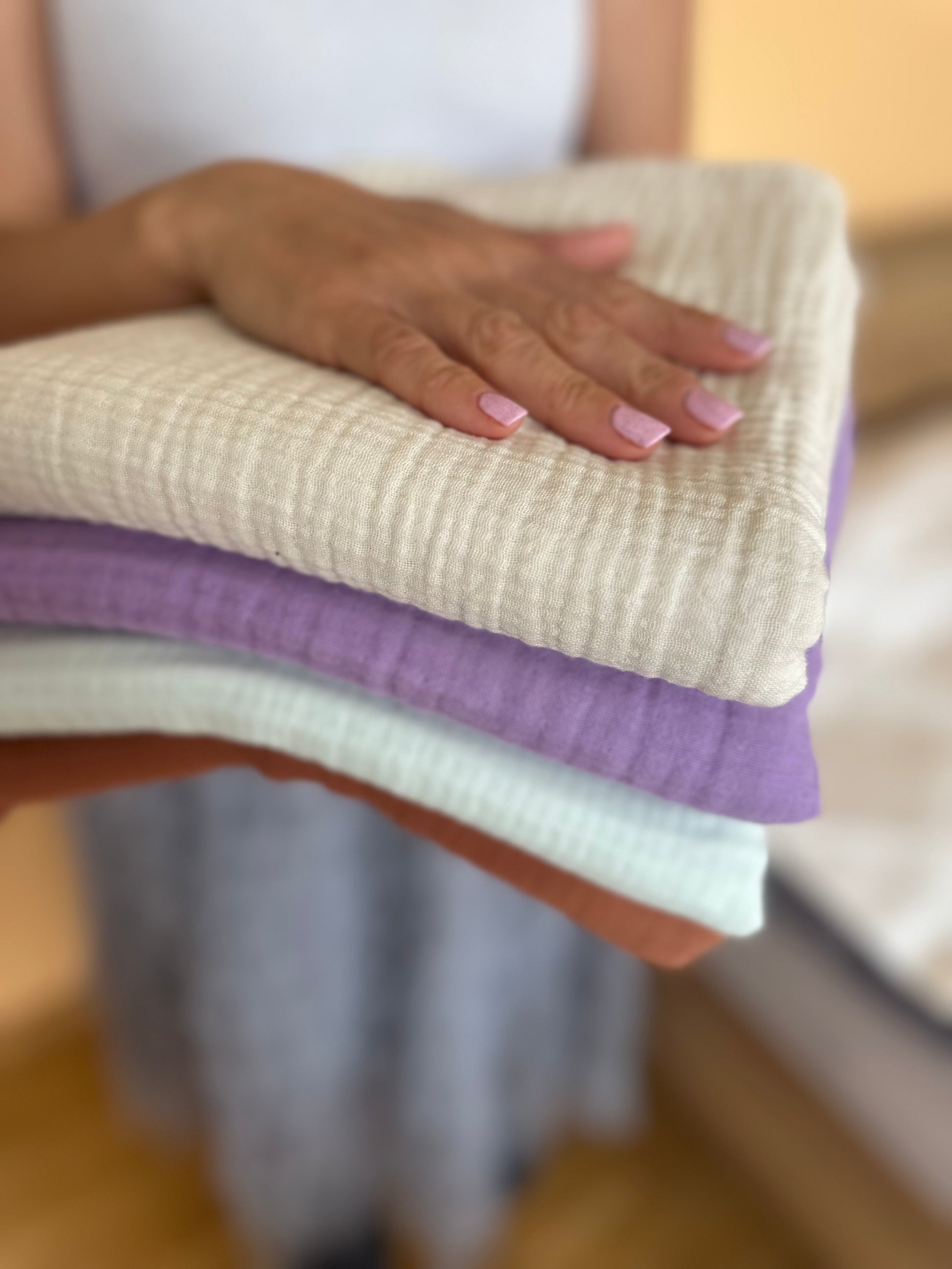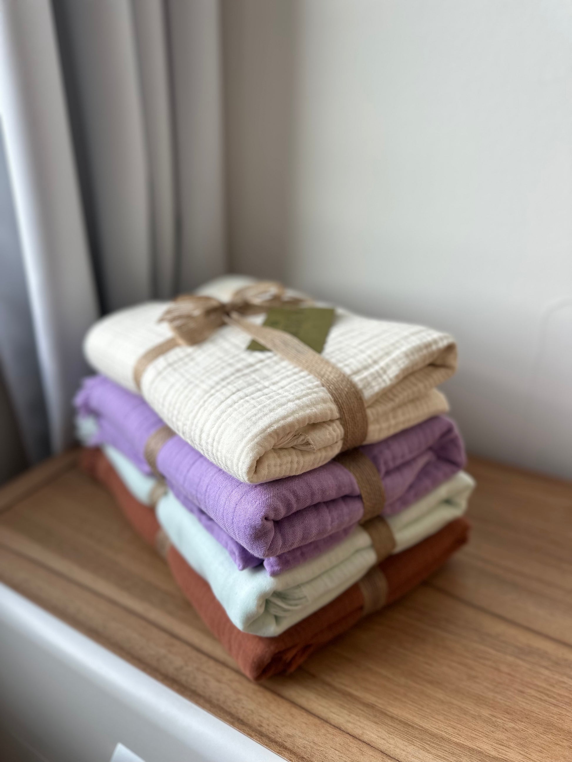 Unsere Produkte bestehen aus 100% Musselin Baumwolle und somit frei von Schadstoffen – perfekt für Eltern, die auf Sicherheit und Qualität Wert legen.